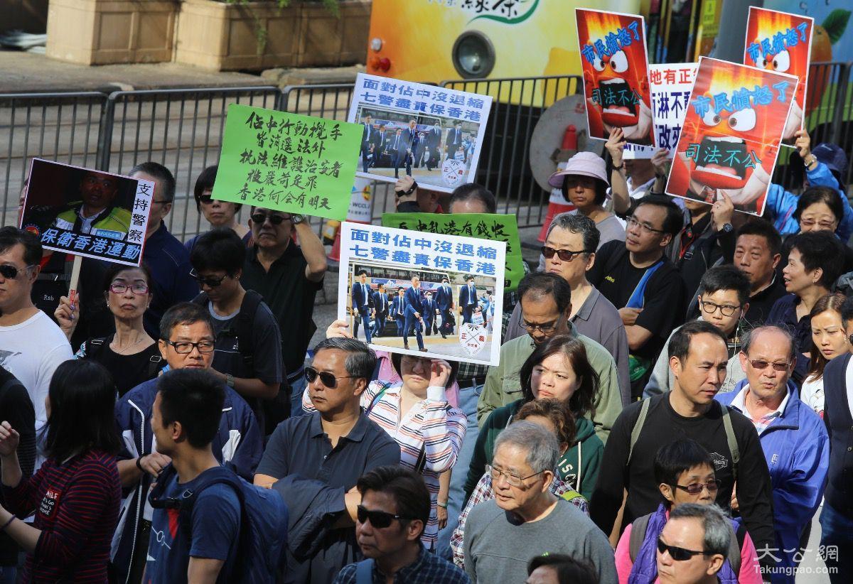 两起判决,引起香港社会广泛争议,多个民间团体发起“撑警大游行”,声援被判监的七名警务人员,约3500人参与。