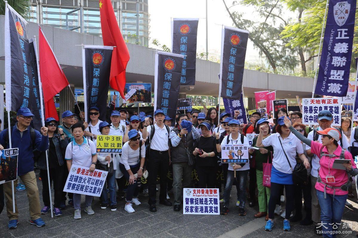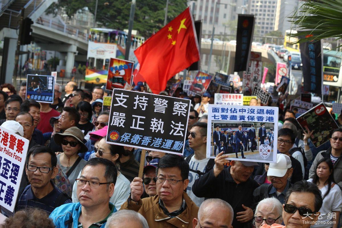 2月20日,香港多个民间团体发起“撑警大游行”,声援被判监的七名警务人员,约3500人参与,当中不乏休班警员,多名退休警队高层亦有出席。大公报记者何嘉骏摄