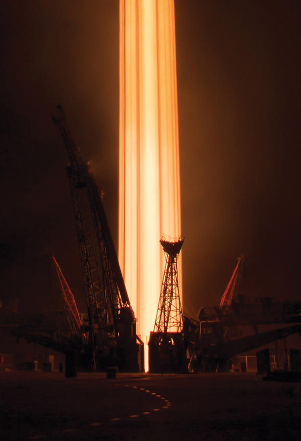 图片中的光路是2016年11月联盟号宇宙飞船起飞时留下的。这艘宇宙飞船在哈萨克斯坦的发射中心起飞,搭载了三名宇航员飞往国际宇宙空间站。