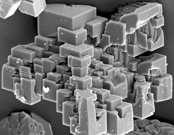 图中的奇怪方块是钙化碳水晶在2000倍放大镜下的模样。