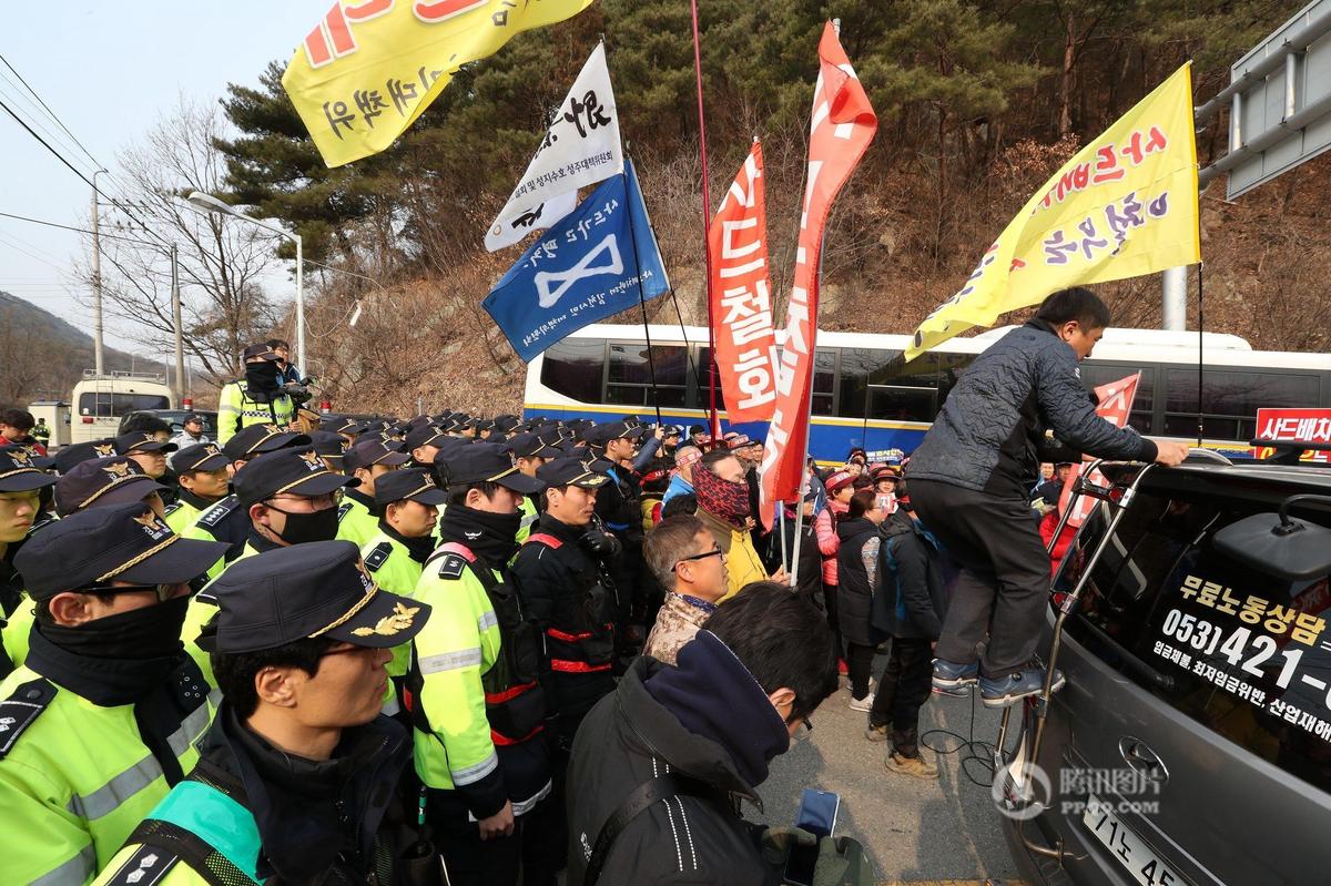 2017年3月1日报道,2月28日下午2时,韩国星州40余名居民手持标牌举行集会反对部署“萨德”。2名愤怒的居民在集会时开着挖掘机驶向星州高尔夫球场,遭到警方阻拦。韩国警方在当地部署了10余支中队,共近1000余名警力。