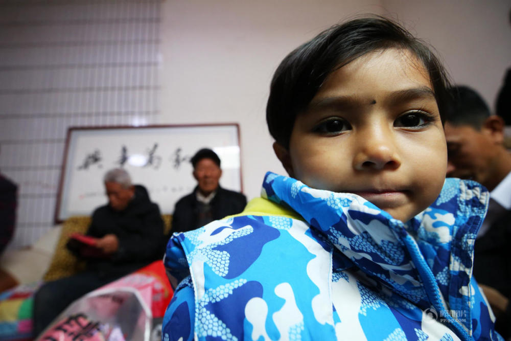 在村里组织的老兵王琪和乡亲们的见面会上,老人用纯正的陕西方言表达了他对祖国对亲人和社会各界人士的感激之情,王琪老人拥有一半印度血统的的次子维什努也用刚学到的一句中国话“谢谢乡党们”表达他的感激之情。苟秉宸/视觉中国