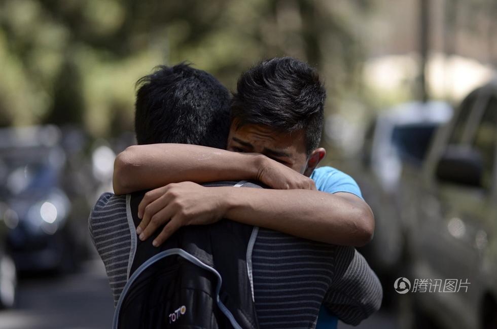 据悉,这家儿童收养中心里生活着约540名儿童,而其接纳能力为400人。图为灾后儿童相拥而泣。