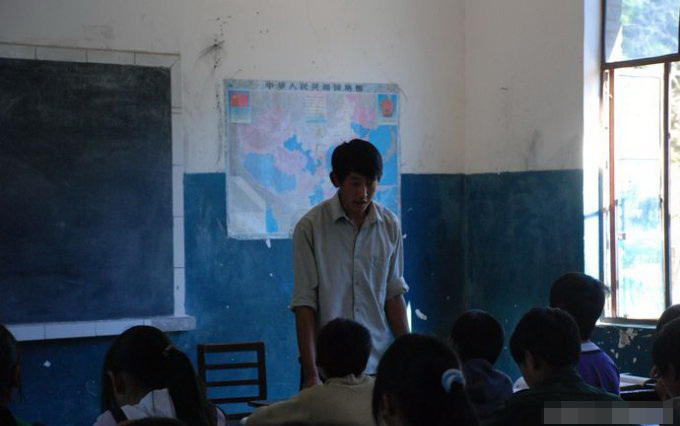 黑板旁边挂着中国地图。