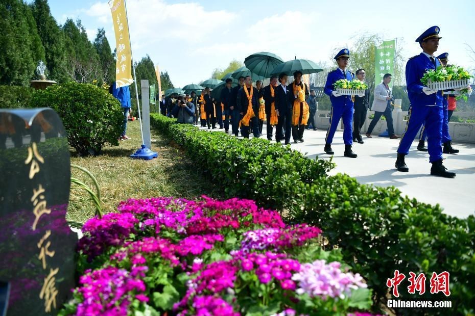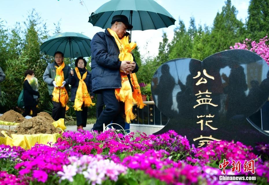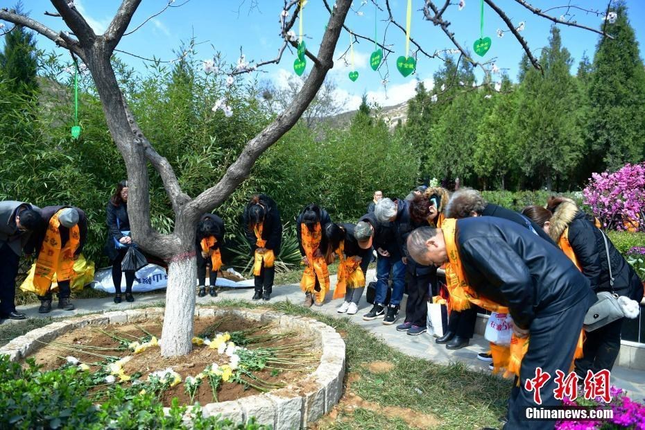 3月26日,在河北平山县古中山陵园生态节地葬区,20个家庭在此举行了免费集体花葬和树葬仪式。