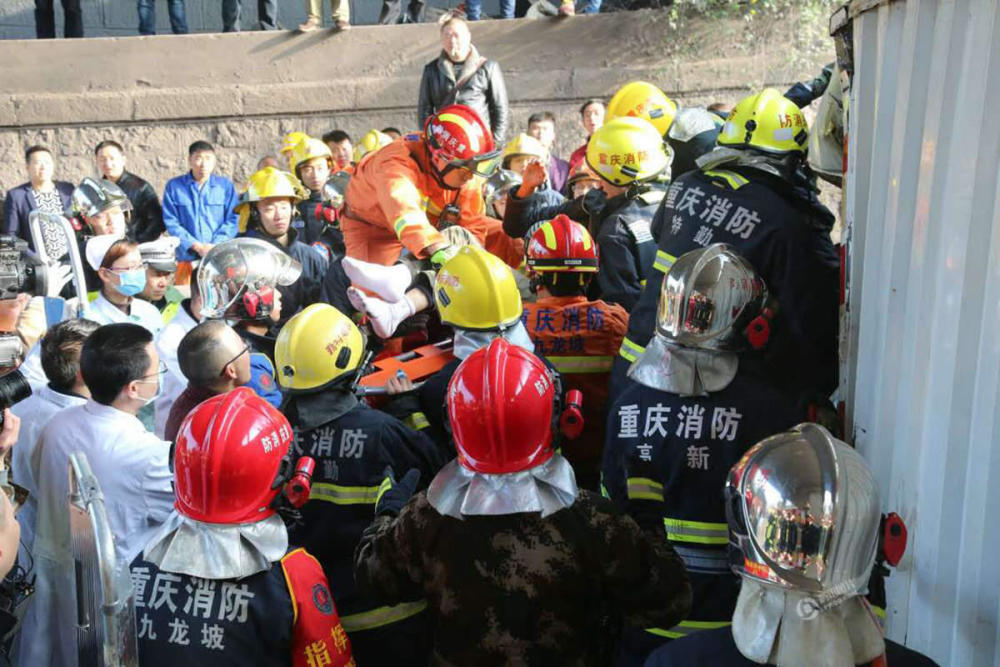 目击者刘先生说,事故现场非常拥堵,事故车辆陆续被移动到道路一侧,社会车辆通行空间被挤压,“连应急车道上都摆满了车”。救援车辆赶往现场遇阻,只能从二郎下道,再经红星美凯龙上道,逆行前往现场进行救援。消防官兵对变形货车进行了破拆,迅速将受困的人救出,并将他们送往九龙坡区第一人民医院和九龙坡区中医院救治。