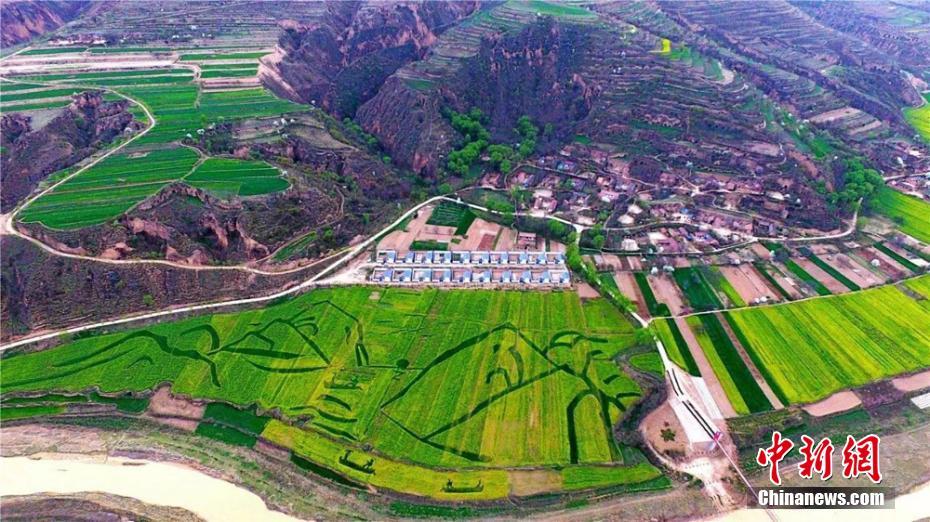 4月25日,2017年中国·庆阳首届油菜花节在当地举行,连绵不断的油菜花田上,经人工“妙笔”勾勒,展现出了一幅幅“嫦娥”、“山水”等主题的画卷。赵彩霞 摄