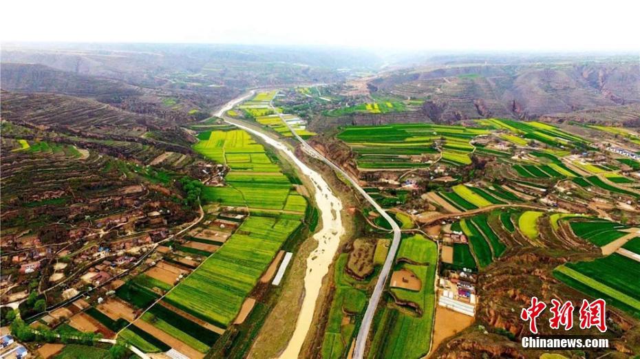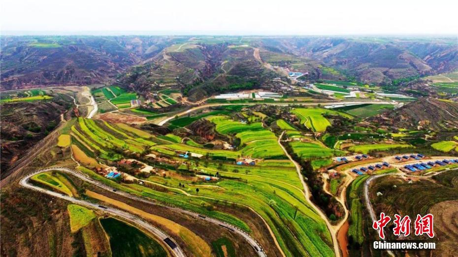 航拍黄土高原连绵油菜花勾勒“嫦娥画卷”