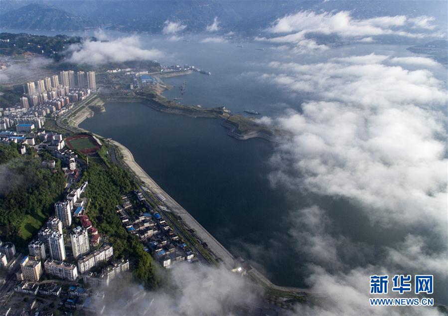 5月4日,船舶停靠在三峡大坝上游引航道准备过闸。
