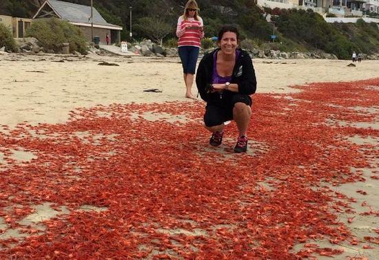 接下来的半个月内,不断有小龙虾被冲到海滩上,临近城市的居民都纷纷前来围观。