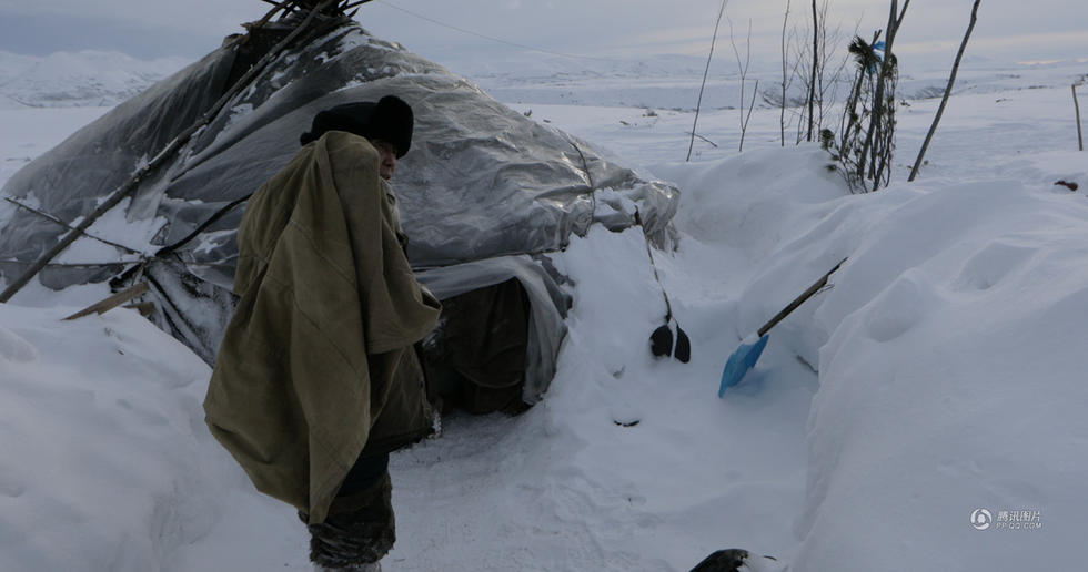 驯鹿人住在一个山坡的顶部,满山被积雪覆盖,他们在积雪中挖了一个大坑,在里面支起帐篷。帐篷四周除了入口处都用雪覆盖上,出口外挖出一条沟槽。帐篷内会支一个火炉,用于取暖和烧水做饭。