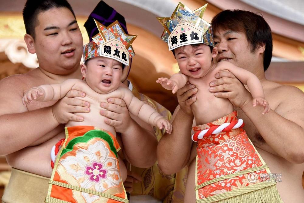 哭得最快、声音最大的宝宝将成为比赛的胜出者。