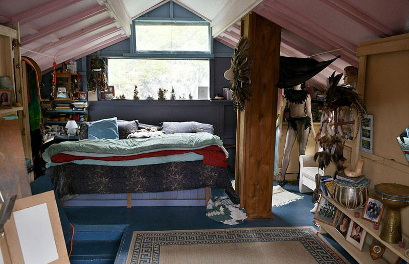 “自由湾”这个名字恰如其分:这个水面漂浮的建筑群是一个多面体,既是住所,又是创作屋,还有花园和舞池。凯瑟琳和亚当斯在那里种菜、自制蜡烛、雕刻、用羽毛进行艺术创造。