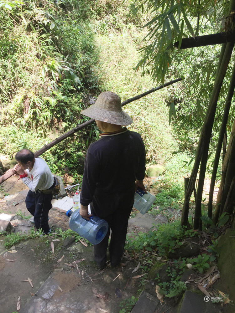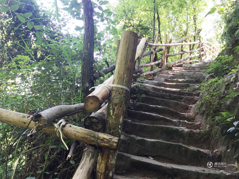 另一条正在修的路,更麻烦一些。森林公园山上有好水,清泉淙淙,沿山石而下,附近居民专门取水检测过,各项指标都好。涪陵很多中老年人提着大桶小瓶,慕名爬山取水,也是散步、郊游、玩。但是取水点在大路下坡100多米的地方,坡陡无路,都是人踩出的泥坑、碎石。人多的时候挨挨挤挤,还要排队。张继文怕老年人摔着,又主动揽下了这条路。跟山顶上那条平缓下坡用石子铺好、水泥抹平不同,这边是陡坡,主要是修梯坎,需要大量石板、砖头,需要细铁丝绑紧木头做护栏,沿山壁空缝的地方,还要填塞砖石,加固路基。