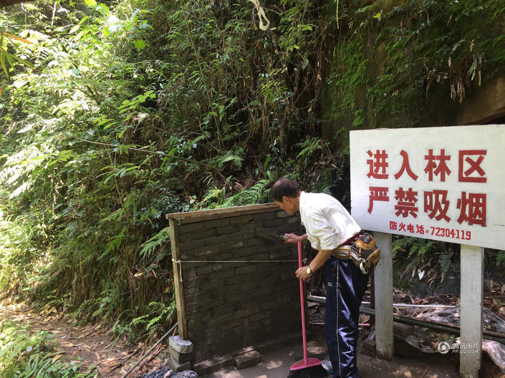 2017年5月13日,重庆,在涪陵森林公园的密林深处,从2012年开始,张继文肩背手提,开始自费修路。他听力残疾,老伴从小有眼疾,两个人组成了建筑队,修了几百米山路。慢新闻-重庆晚报/视觉中国
