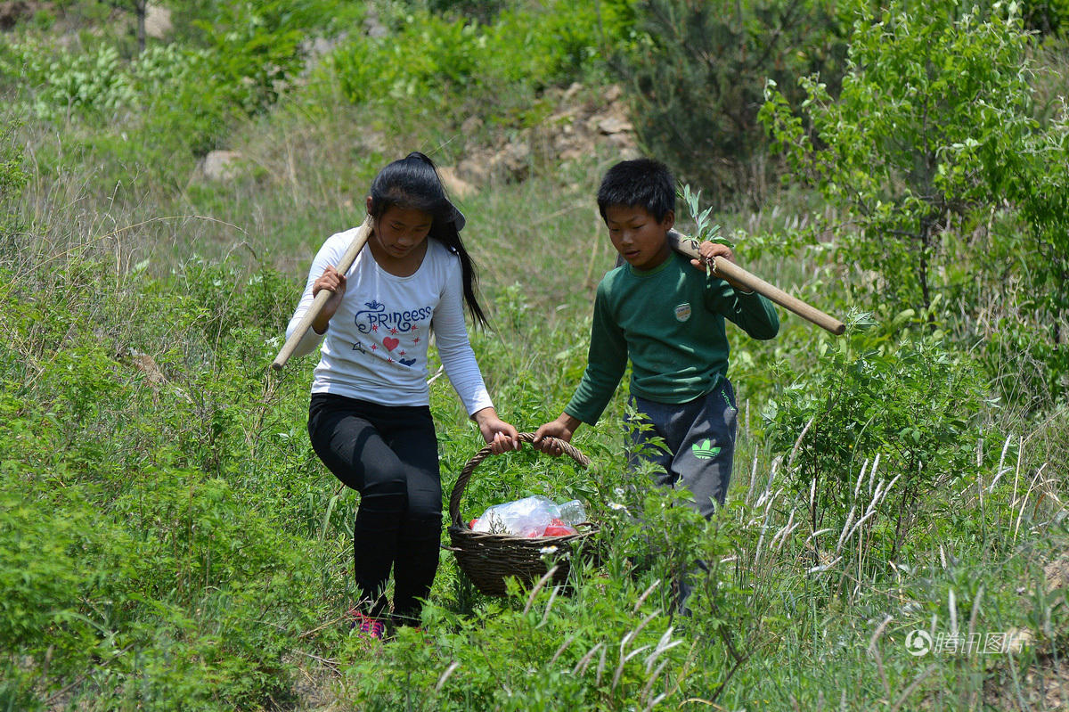 在良甫山上,姐弟俩不停的用撅头刨着,热的满头大汗,一上午一边采着药,一边采着山菜。因为记不清楚丹参的具体样子,篮子里采了很多不知名的草药。