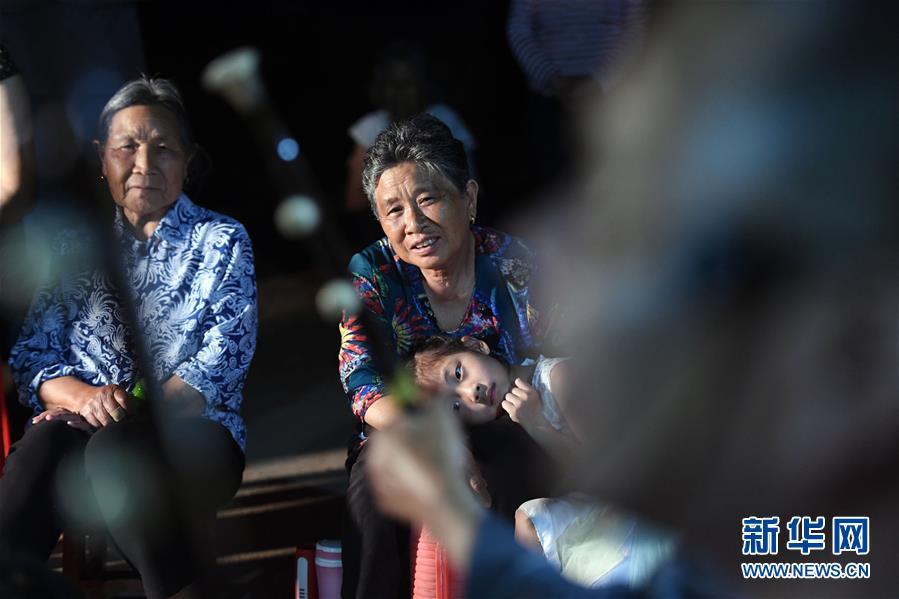 村民在观赏盲人曲艺队的道情演出(5月18日摄)。