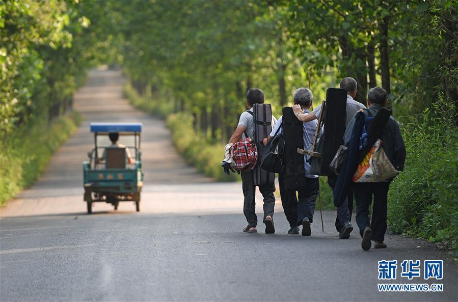 盲人曲艺队结伴而行,前往上高县徐家渡镇万坑村演出(5月18日摄)。