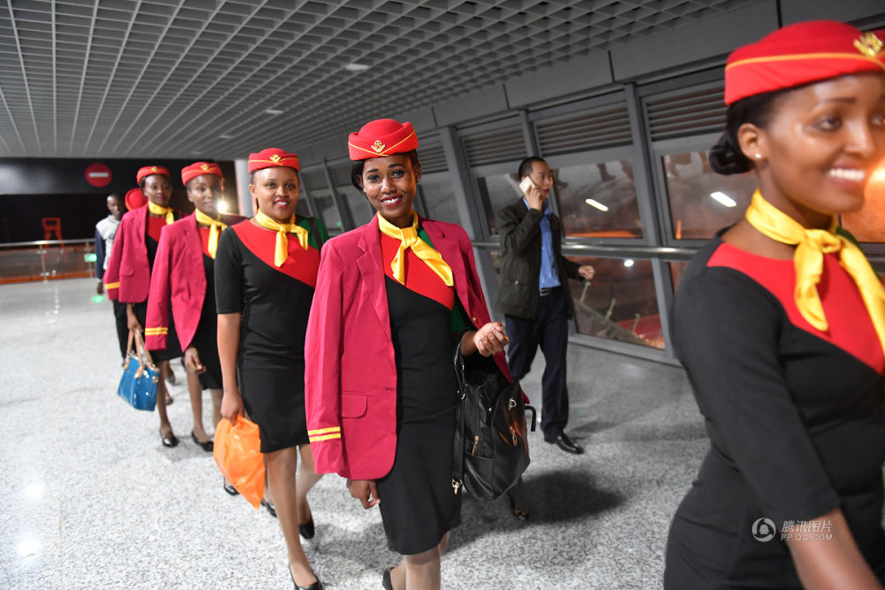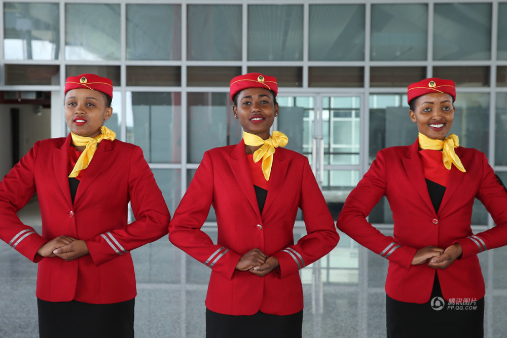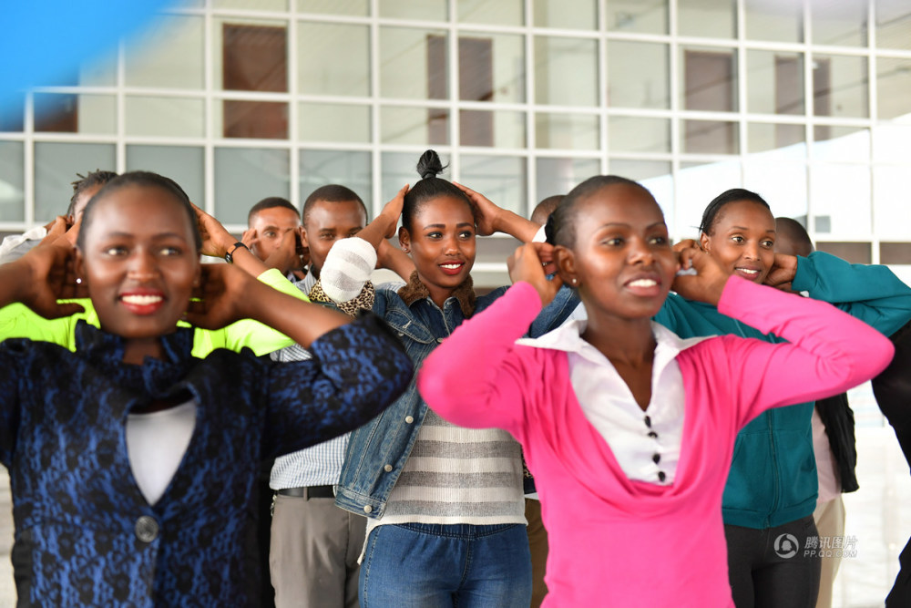 蒙内铁路承建商中国路桥在项目建设过程中通过积极推进员工本土化,为当地人创造就业机会和成长平台;同时项目也融入“当地元素”,给当地商业和产业发展创造了机会。图为5月16日,在肯尼亚蒙内铁路内罗毕南站,列车乘务员莎伦(中)练习礼仪动作。新华社记者潘思危摄