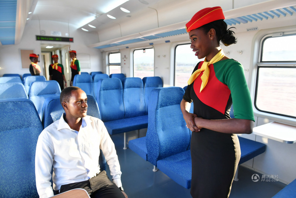 图为5月29日,乘务人员等待列车开往内罗毕。TONY KARUMBA/视觉中国