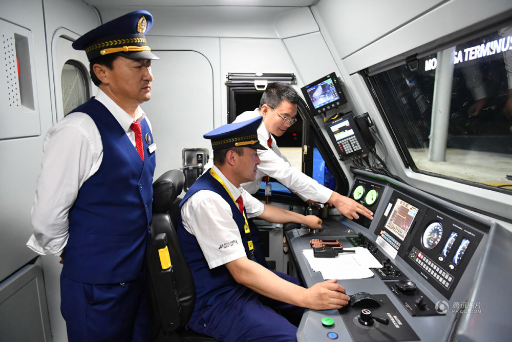肯尼亚交通部称,肯政府拟将蒙内铁路交由中国路桥公司运营,中国路桥将获得5年的运营权。肯政府也将利用这5年时间培养自己的运营队伍。图为5月29日,在肯尼亚蒙内铁路蒙巴萨西站,旅客列车指导司机涂主新(右)和司机衡磊(中)、汪群在驾驶室内工作。新华社记者孙瑞博摄
