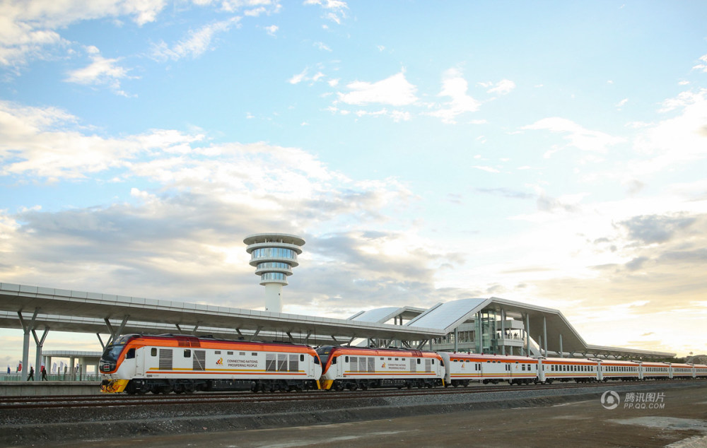 为5月29日,一列火车驶过肯尼亚蒙内铁路蒙巴萨西站。新华社记者潘思危摄