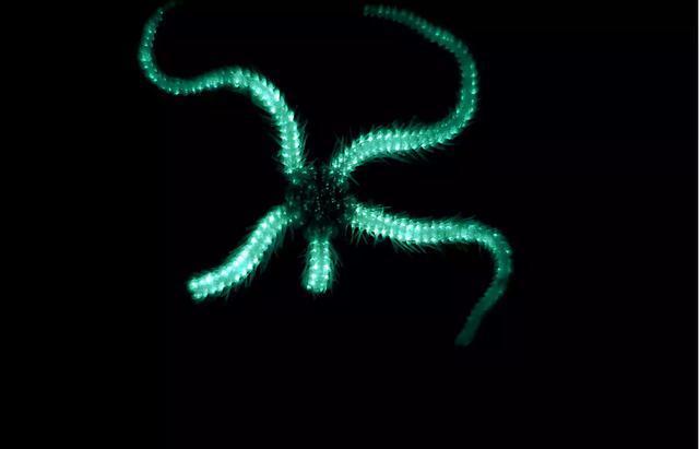 这是发光的海蛇尾,它们用微弱的荧光警告那些捕食者,不要把它们当作食物。