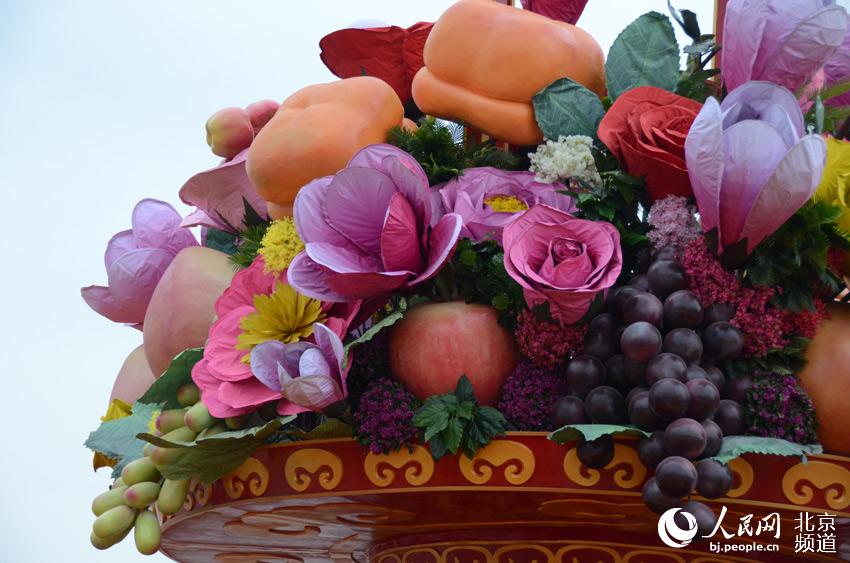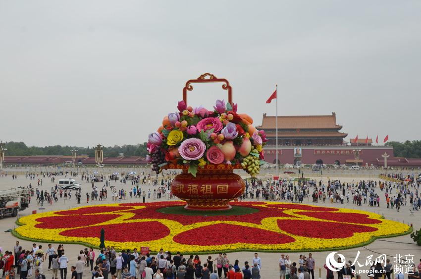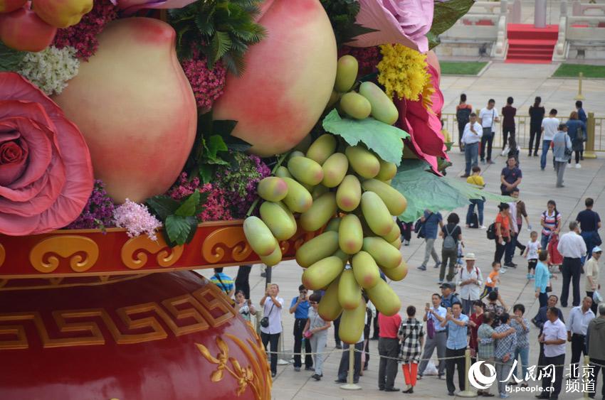 人民网北京9月25日电 (尹星云)今天,“祝福祖国”巨型花果篮组装完成,正式亮相天安门广场。记者从不同角度对“祝福祖国”花果篮进行了拍摄。