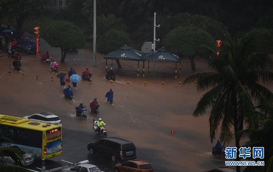 当日17时02分,海口市气象台变更暴雨橙色预警信号为暴雨红色预警,海口北半部地区3小时内降雨量达100毫米以上,受暴雨影响,海口部分路段积水严重,交通受到严重影响。