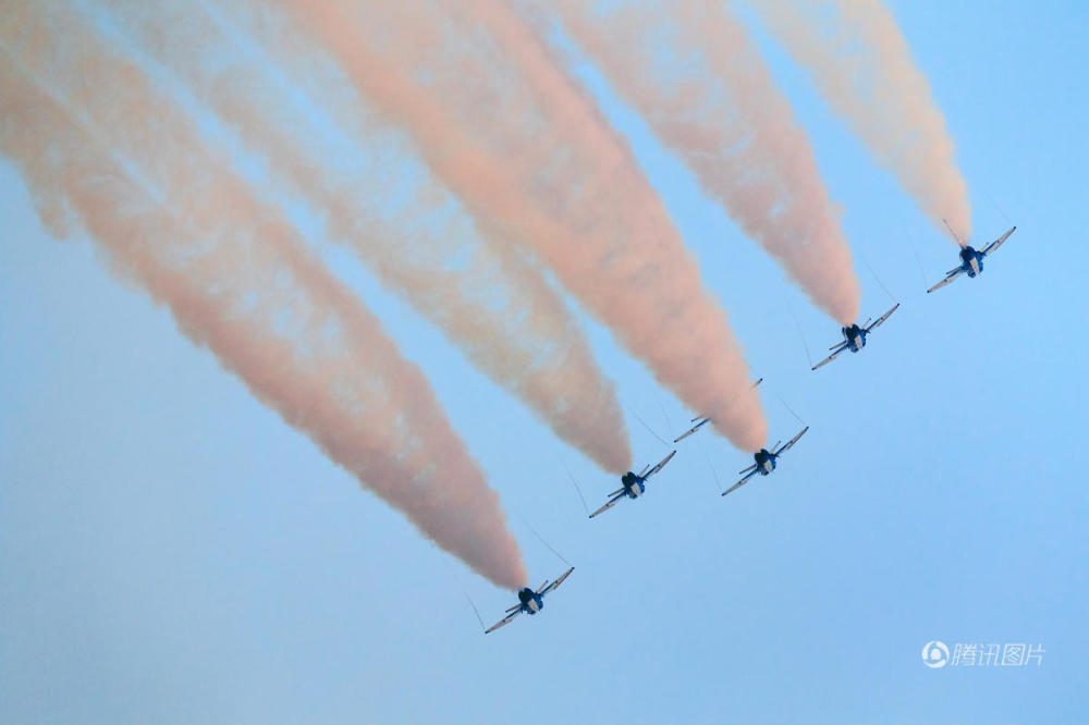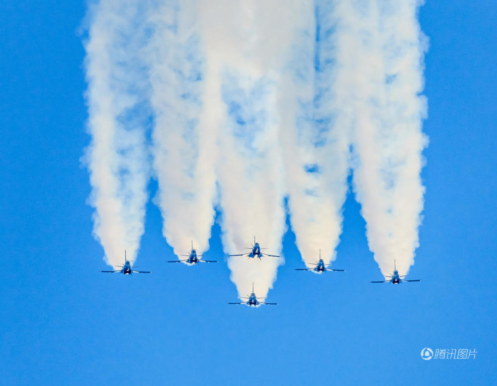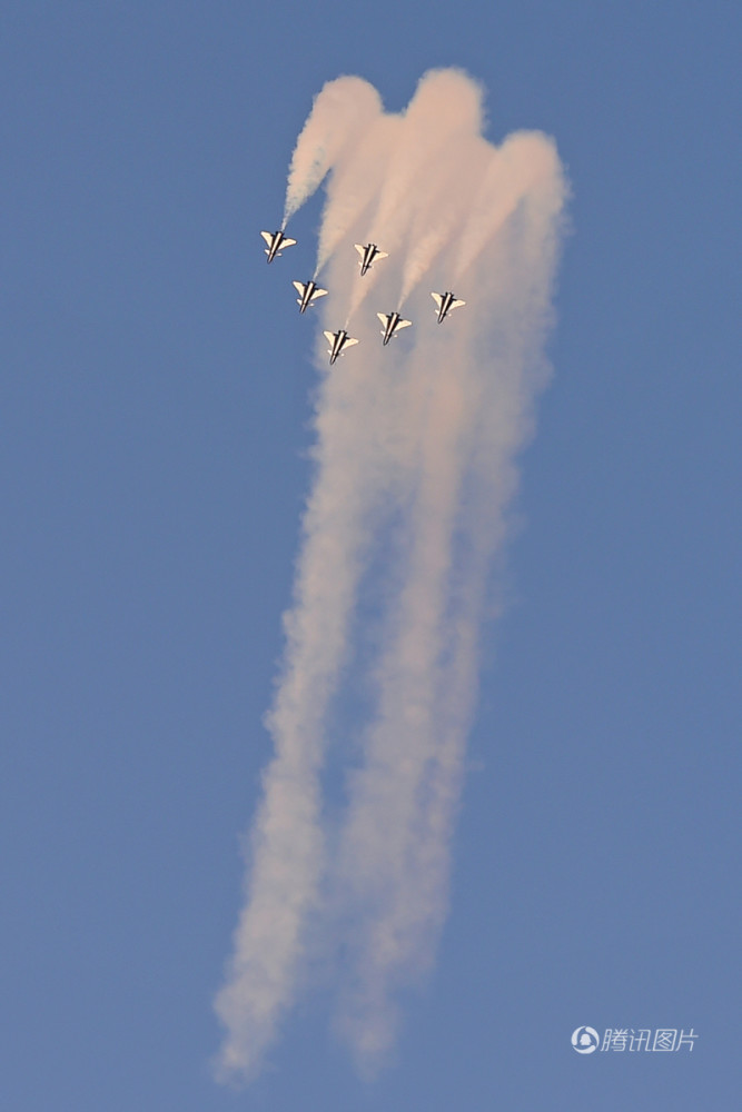 被国际友人誉为“中国蓝天仪仗队”的空军八一飞行表演队,已为168个国家和地区的723个代表团进行了600余场飞行表演。新华社记者赵丁喆摄