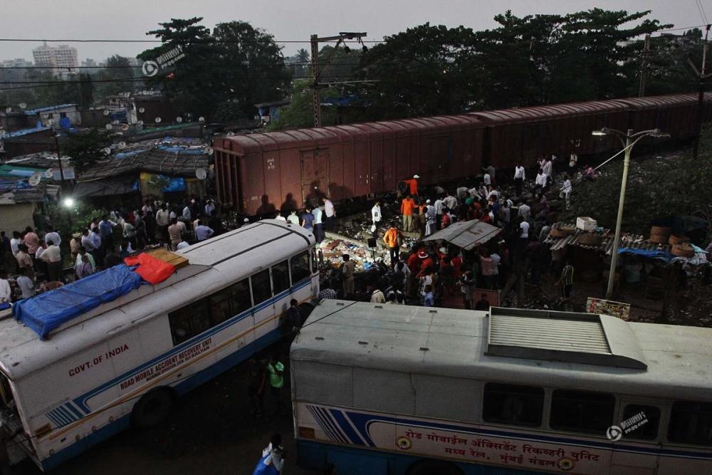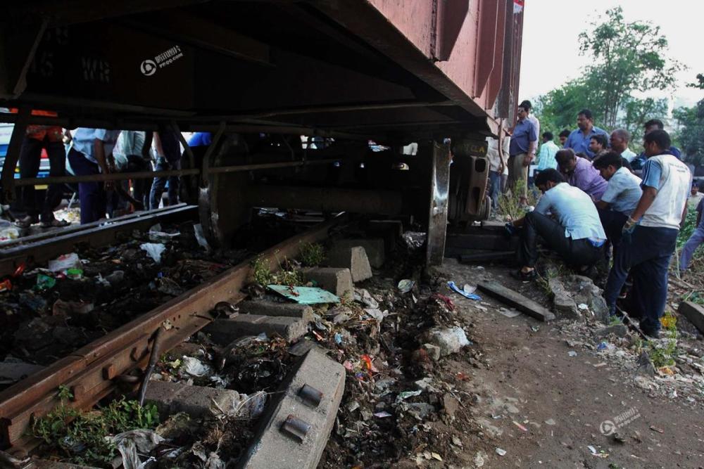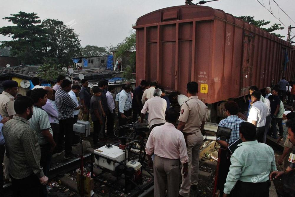 当地时间2017年12月6日,印度孟买,一辆货运火车在当地脱轨,导致附近22条主要铁路干线班次被迫取消,其他列车也不同程度受到影响。Hindustan Times via Getty Images