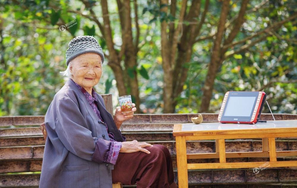 近年来,老人现在迷恋上了彩调,于是在城里工作的孙儿们便帮她买了一台平板回来,老人很机灵,没几天就把它玩得熟透了,选节目、调音响、充电全都自己完成。