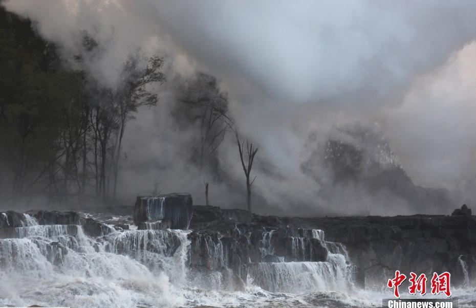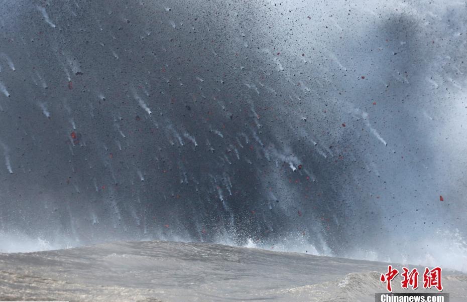 当地时间2018年5月20日,美国夏威夷基拉韦厄火山继续喷发,岩浆流入太平洋,遇海水激起滚滚烟雾。