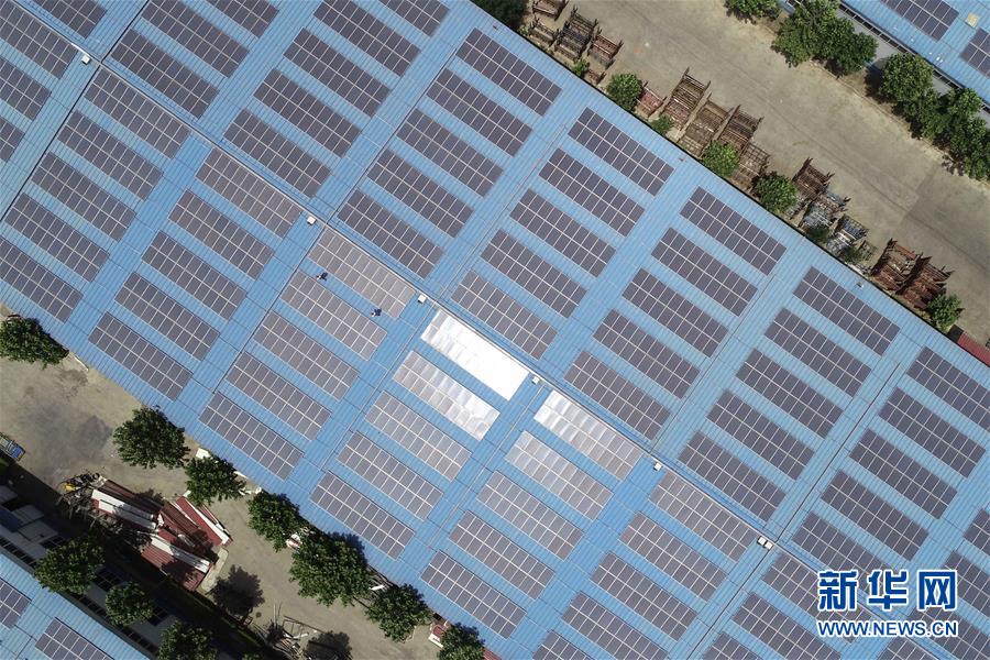 这是河北省沙河经济开发区德盛工业园屋顶分布式光伏电站(6月11日无人机拍摄)。