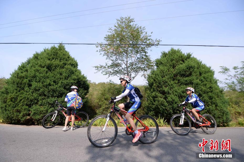 9月12日,“2018海淀区旅游委走进易县暨首届金秋易县骑行活动”在河北省易县崇陵举行。50余位从北京赶来的自行车户外运动爱好者从崇陵出发,共骑行约17公里。据介绍,活动旨在加强北京海淀区与河北易县的旅游扶贫对接,倡导低碳环保的理念,提高人们对生活环境和健康生活方式的关注。图为自行车爱好者在骑行途中。中新社发 许达明 摄
