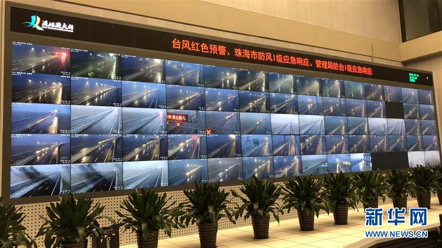 9月16日台风登陆时,港珠澳大桥管理局实时监控大桥情况。