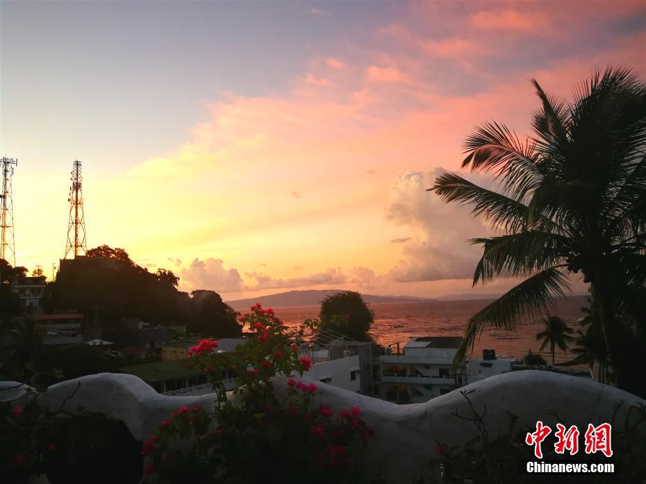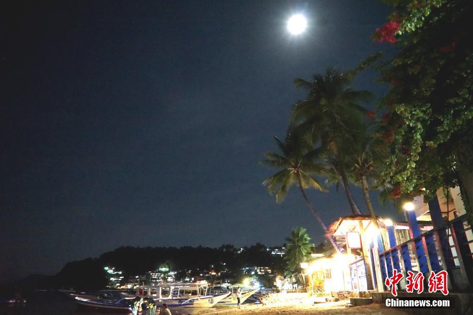 菲律宾海豚湾Puerto Galera(简称PG岛)是著名的潜水胜地,当地聚集着来自世界各地的潜水爱好者,不少中国潜水客来此过中秋节。图为9月24日晚,PG岛白沙滩一希腊风格酒店的中秋月。 中新社记者 关向东 摄