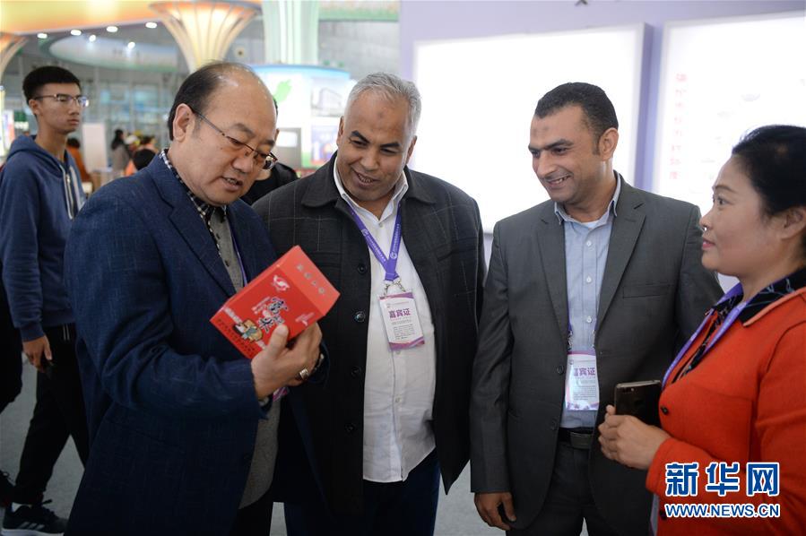 10月10日,中国参展商为外国嘉宾介绍中国稻米产品。新华社记者王凯摄
