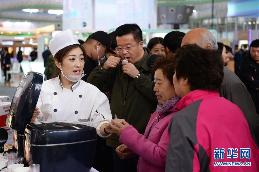 10月10日,市民在现场试吃某参展企业的稻米产品。新华社记者王凯摄