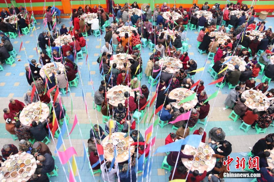 四川泸州近千名老人同餐 坝坝宴上话重阳