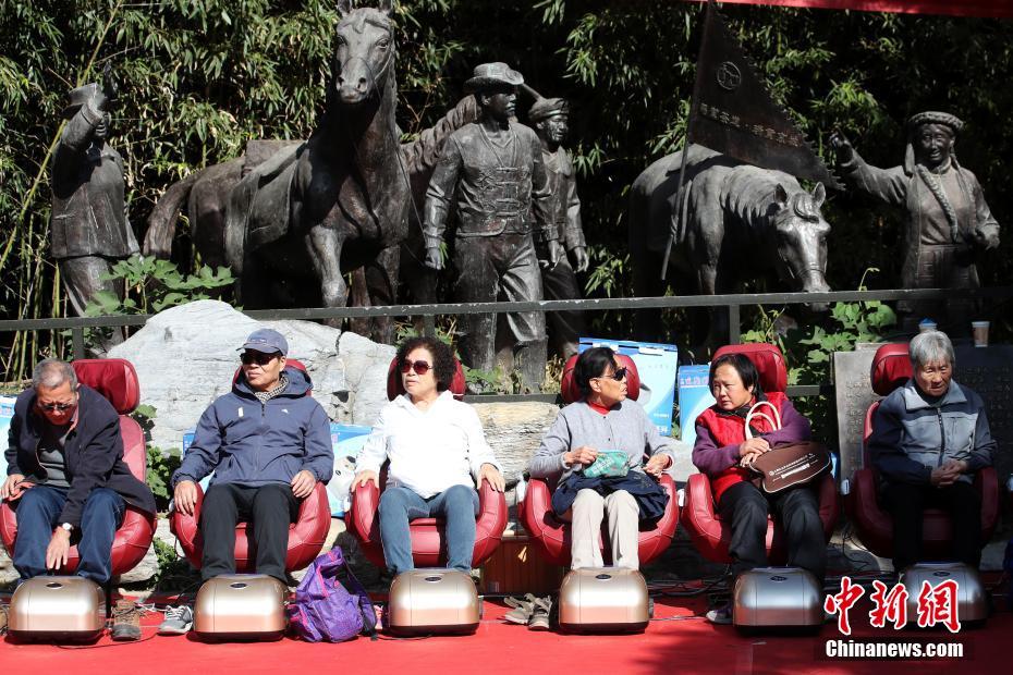 10月17日,第31届八大处重阳游山会在北京八大处公园开幕,游山会以“孝满京城 德润人心”为主题,通过一系列主题活动,营造出尊老敬老爱老的氛围,彰显中国传统节日文化的魅力。中新社记者 盛佳鹏 摄