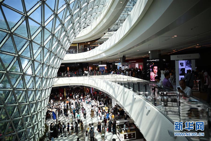 顾客在海南三亚海棠湾免税店内游览、购物(2月18日摄)。