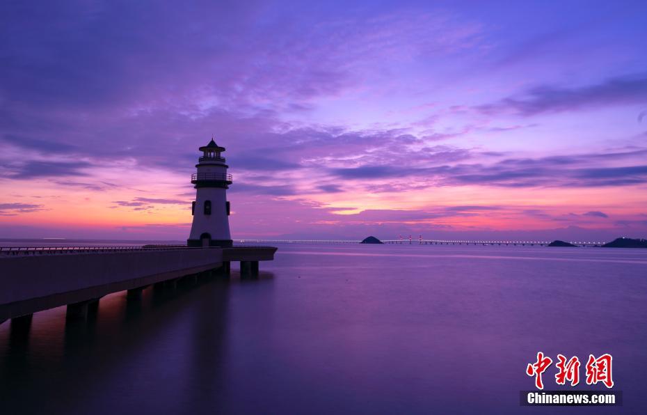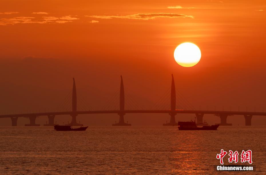 旭日映衬港珠澳大桥 风景秀丽迷人
