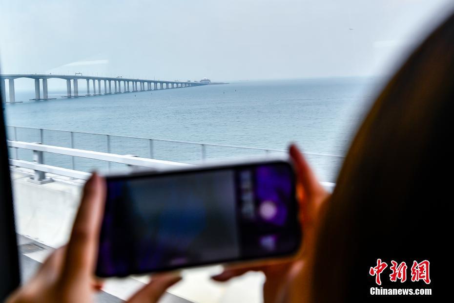 10月24日,港珠澳大桥正式通车,首批满载旅客的跨境巴士在大桥上行驶。中新社记者 谢光磊 摄