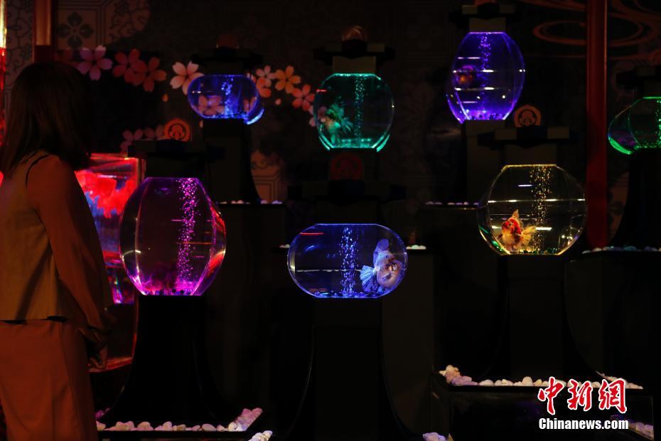 10月25日晚,凌空金鱼艺术展在上海环球金融中心94层观光大厅揭开神秘面纱。近5000条五彩斑斓的金鱼,多达18个名贵珍奇品种集中亮相,令众多参观者流连忘返。中新社记者 汤彦俊 摄