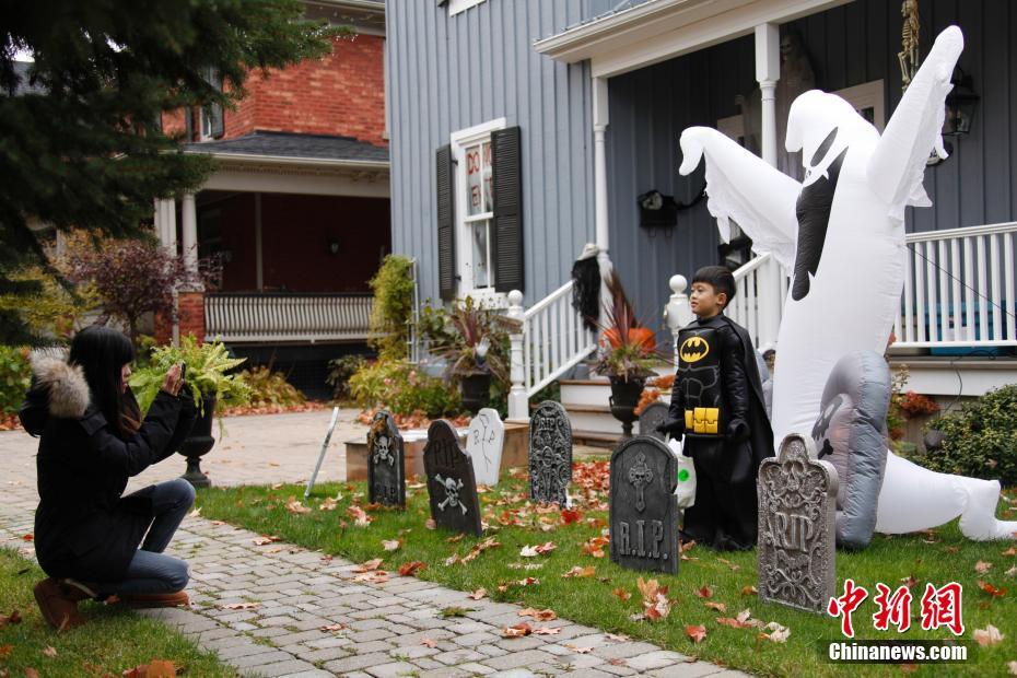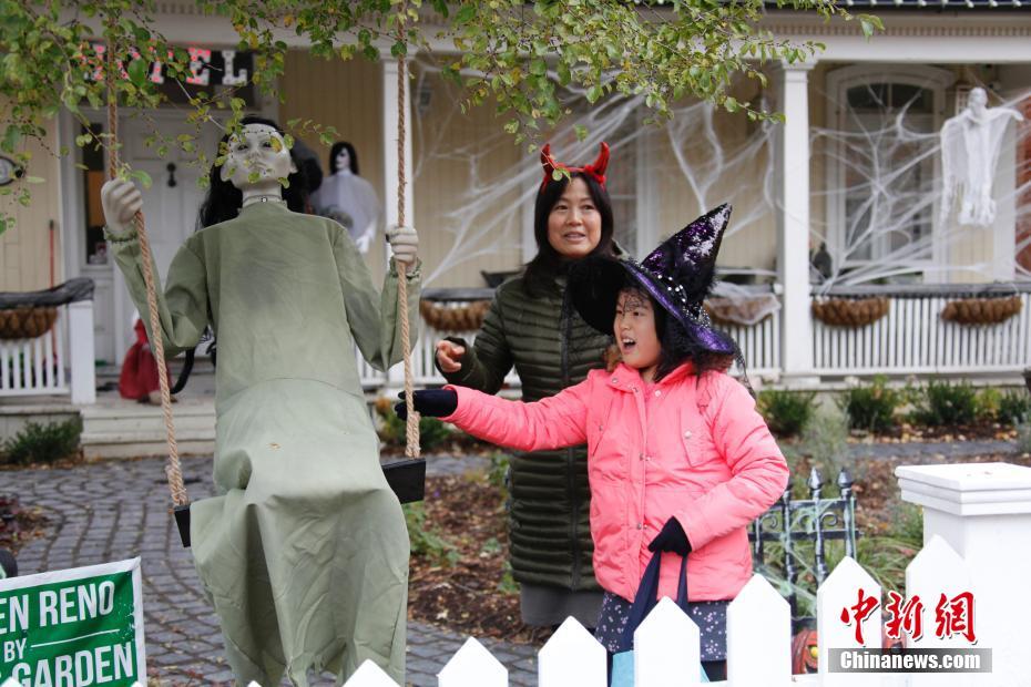 当地时间10月28日,加拿大大多伦多地区民众已开始以新奇甚至“大胆”的方式迎接即将到来的万圣节前夜。图为大多伦多地区万锦市(Markham),民众扮作卡通形象出没街头。中新社记者 余瑞冬 摄