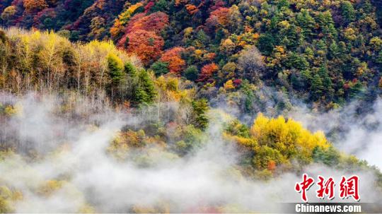 近日,重庆城口彩叶进入最佳观赏期,层林尽染的大巴山彩叶犹如“打翻了的调色板”。据了解,城口彩叶的持续时间将长达一个多月。