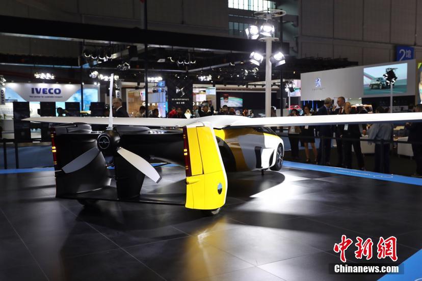 11月5日,首届中国国际进口博览会拉开帷幕。最科幻展品之一“会飞的汽车”Aeromobil揭开神秘面纱。该车可在3分钟内“变身”,汽车模式最高时速160公里,飞行模式最高时速可达360公里。图为“会飞的汽车”开启飞行模式。