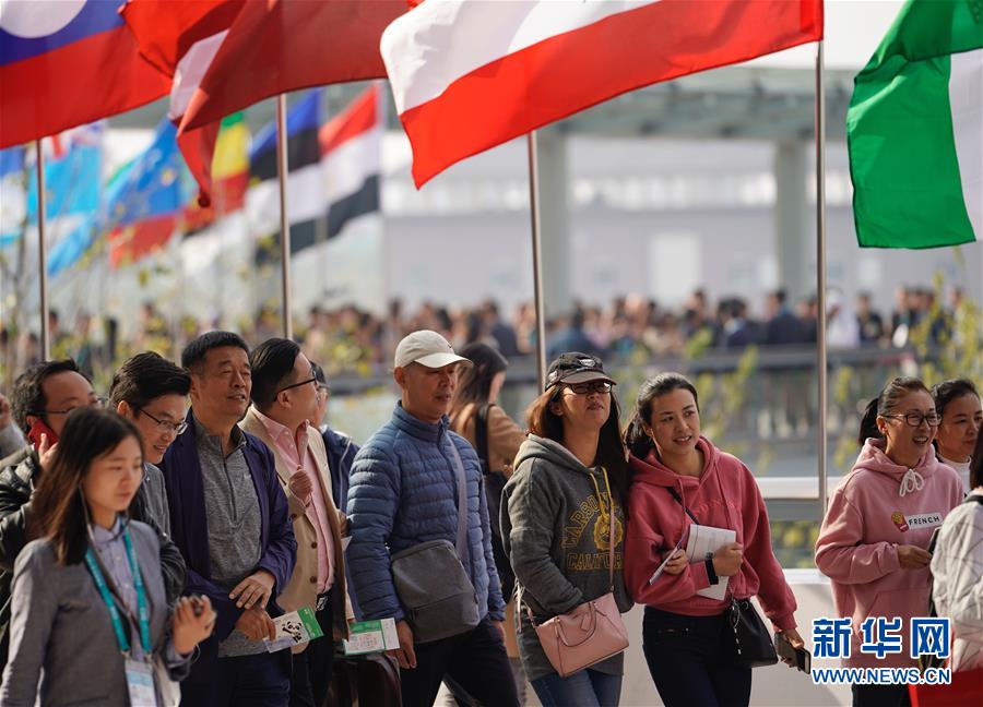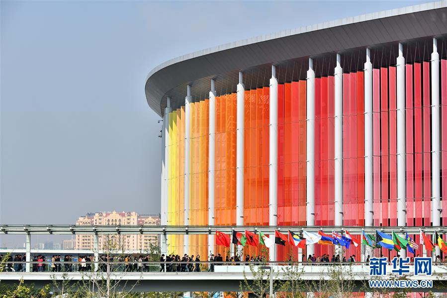 11月9日,人群步入进博会会场。首届进博会9日至10日安排团体观众实名制观展。新华社记者 邢广利 摄