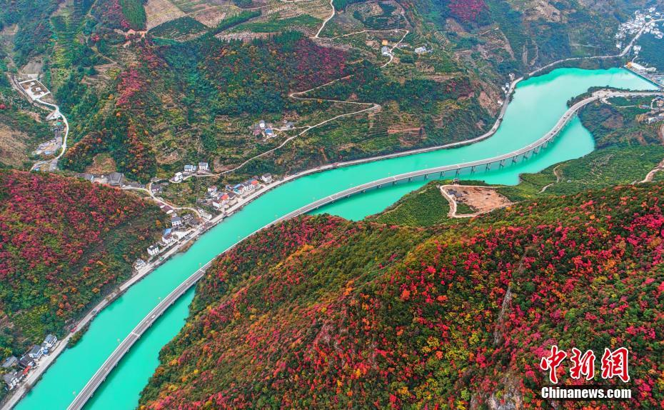 湖北兴山现美艳秋景 碧水“天路”宛如翡翠玉带